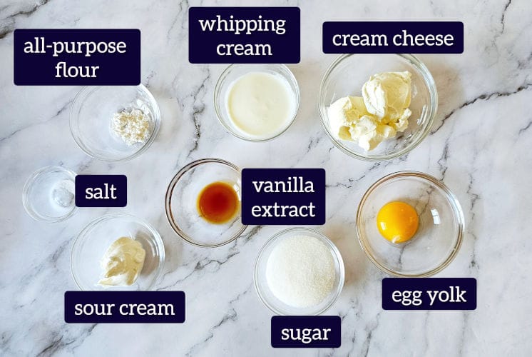 Here is the entire list of ingredients required to make a New York cheesecake recipe without springform pan. Please have a look at the recipe card at the bottom of the recipe for exact measurements.
